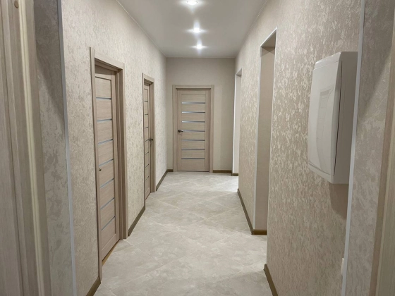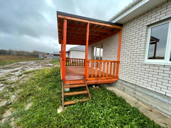 Кухня-гостиная с выходом на веренду, два санузла, три спальни, просторный коридор, котельная. Дом сдается полностью с отделкой.