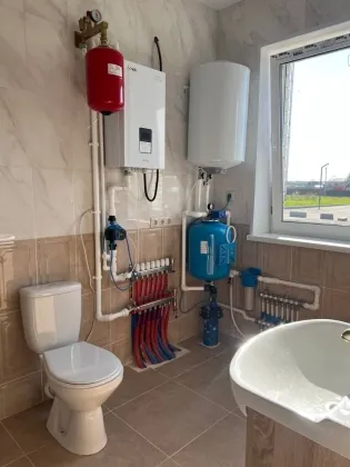 в бойлерной электрокотел, водонагреватель на 80 литров;