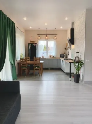 Продажа жилого дома, Московская область, г.о. Истра, Подпоринские Дачи, от МКАД 38км. по Волоколамскому, Пятницкому шоссе. Дом построен на монолитной плите из газобетонных блоков, утеплен, обшит сайдингом, крыша металлочерепица. Общая площадь дома с верандой 103кв.м., кухня – гостиная 40 кв.м., комнаты 13/11/11кв.м., два санузла, бойлерная. Теплый пол, панорамные окна. Коммуникации: электрокотел, свет 15 кВт., вода (колодец). Огороженный участок 6 соток. До п. Агрогородок 10 минут на машине (аптека, почта, школа, детсад, бассейн). Великолепное место для жизни и отдыха с прекрасной природой и чистым воздухом. Истринское водохранилище в 18 км. Удобная транспортная доступность как личным так и общественным транспортом. Один собственник, быстрый выход на сделку. Исх-1884