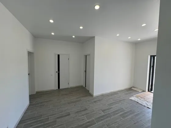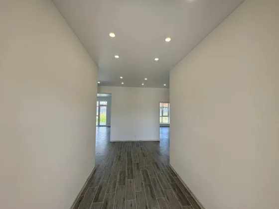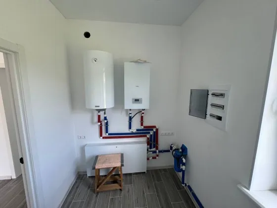 Кухня-гостиная с выходом на веранду, два санузла, три спальни (одна из них мастер-спальня с сан узлом), просторный коридор, гардеробная, бойлерная.