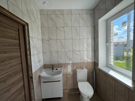 Кухня-гостиная с выходом на веренду, два санузла, три спальни, просторный коридор, котельная. Дом сдается полностью с отделкой.