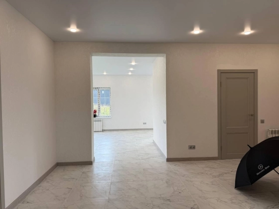 Кухня-гостиная с выходом на веранду, два санузла, три спальни (одна из них мастер-спальня с сан узлом), просторный коридор, гардеробная, бойлерная.
