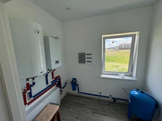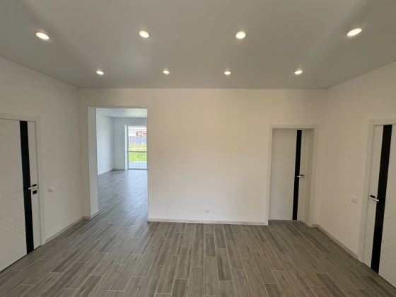 Кухня-гостиная с выходом на веранду, два санузла, три спальни (одна из них мастер-спальня с сан узлом), просторный коридор, гардеробная, бойлерная.