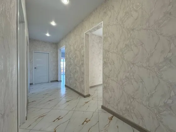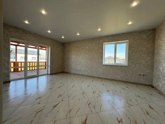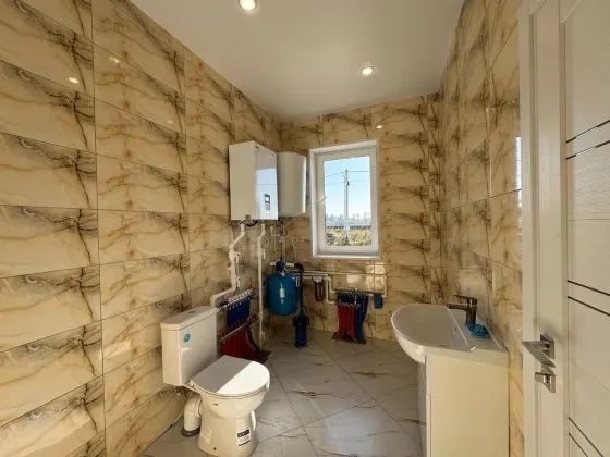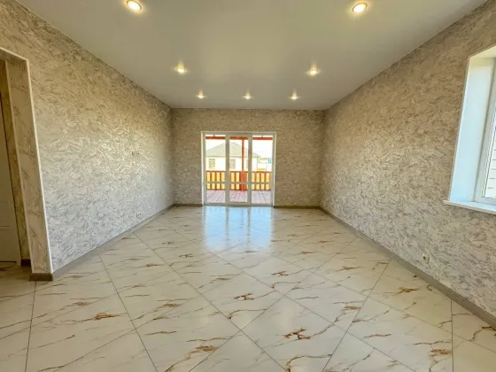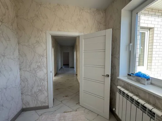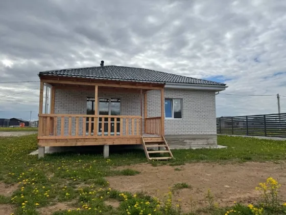 Кухня-гостиная с выходом на веренду, два санузла, три спальни, просторный коридор, котельная. Дом сдается полностью с отделкой.
