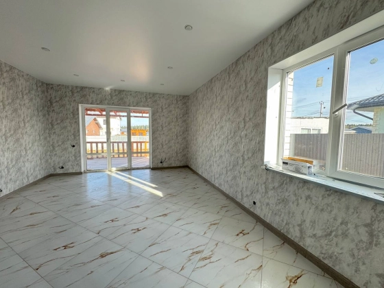 Кухня-гостиная с выходом на веренду, два санузла, три спальни, просторный коридор, котельная. Дом сдается полностью с отделкой.