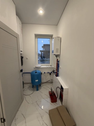 - Отопление — по всему дому тёплый водяной пол + радиаторы в жилых комнатах.