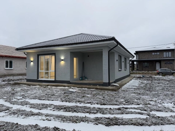 - Стены — газоблок D500, утеплитель, фасад: штукатурка “короед”.