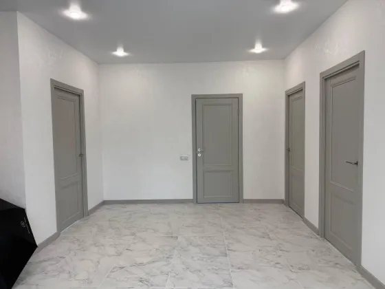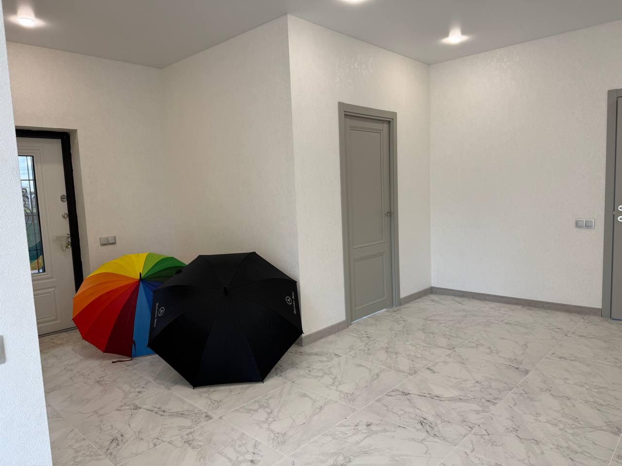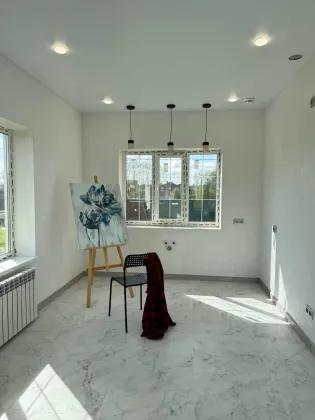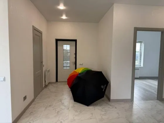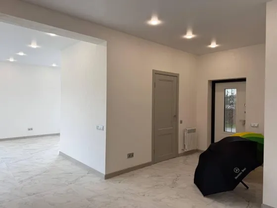 Кухня-гостиная с выходом на веранду, два санузла, три спальни (одна из них мастер-спальня с сан узлом), просторный коридор, гардеробная, бойлерная.