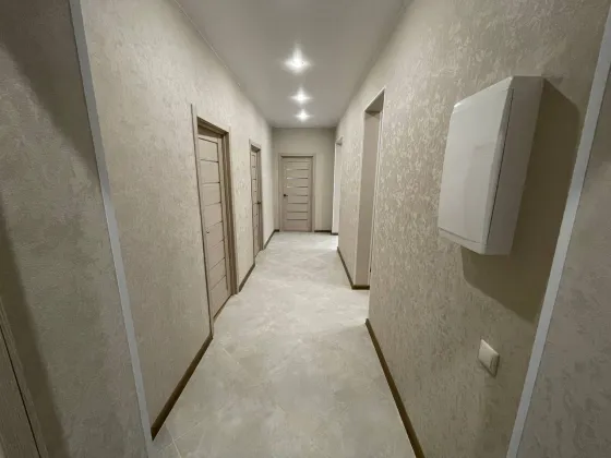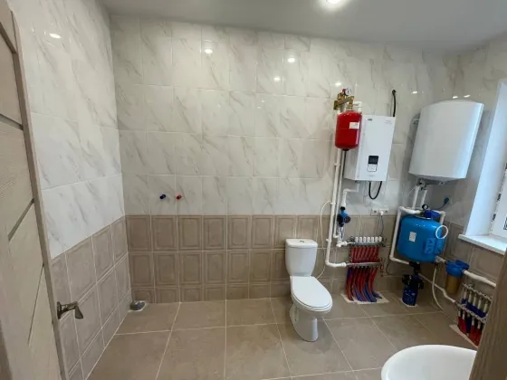 Кухня-гостиная с выходом на веренду, два санузла, три спальни, просторный коридор, котельная. Дом сдается полностью с отделкой.