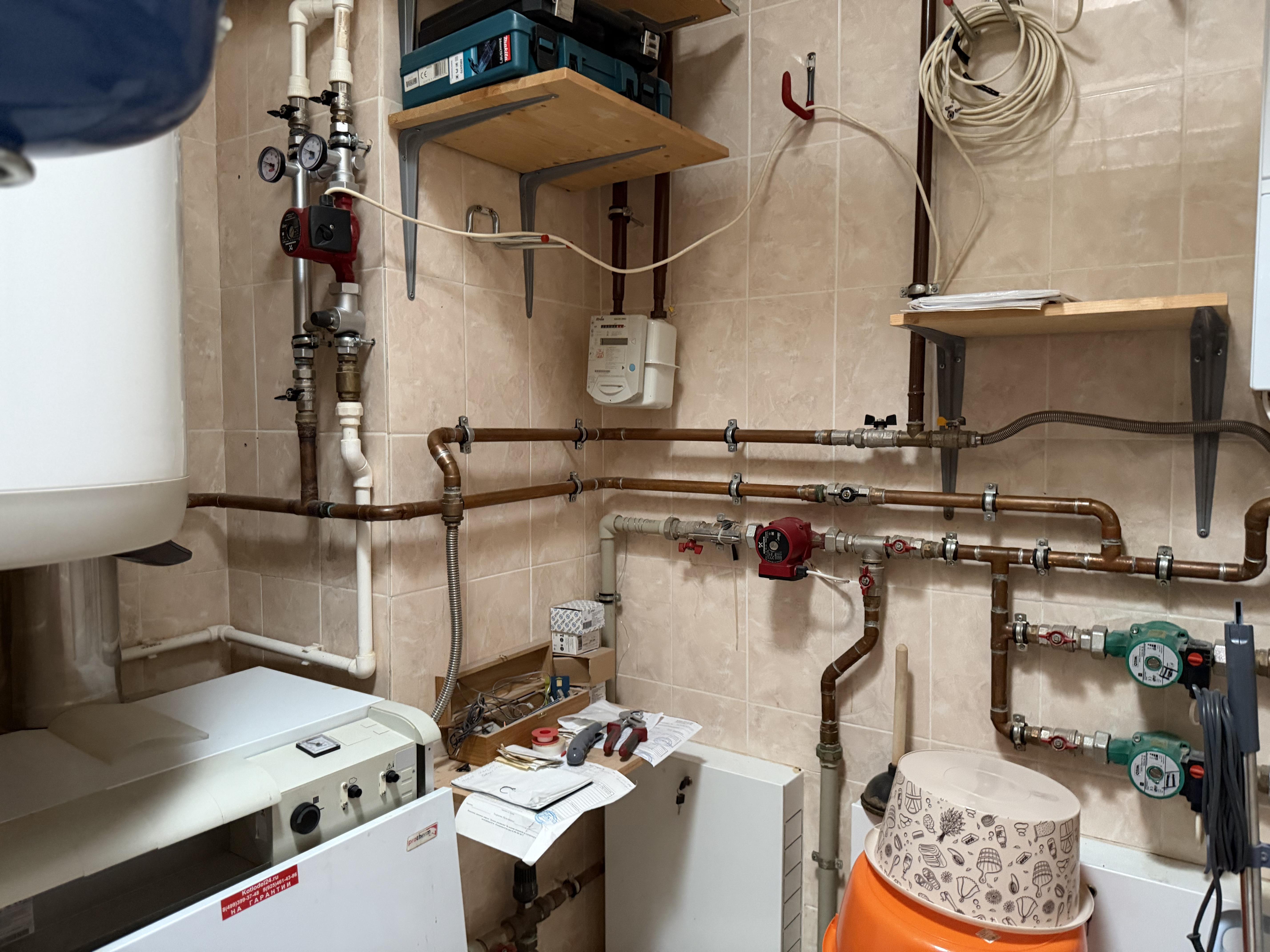 · Газ — магистраль. Два котла (напольный Protherm + настенный Vaillant). Отапливаем всё: дом, гараж, беседку.