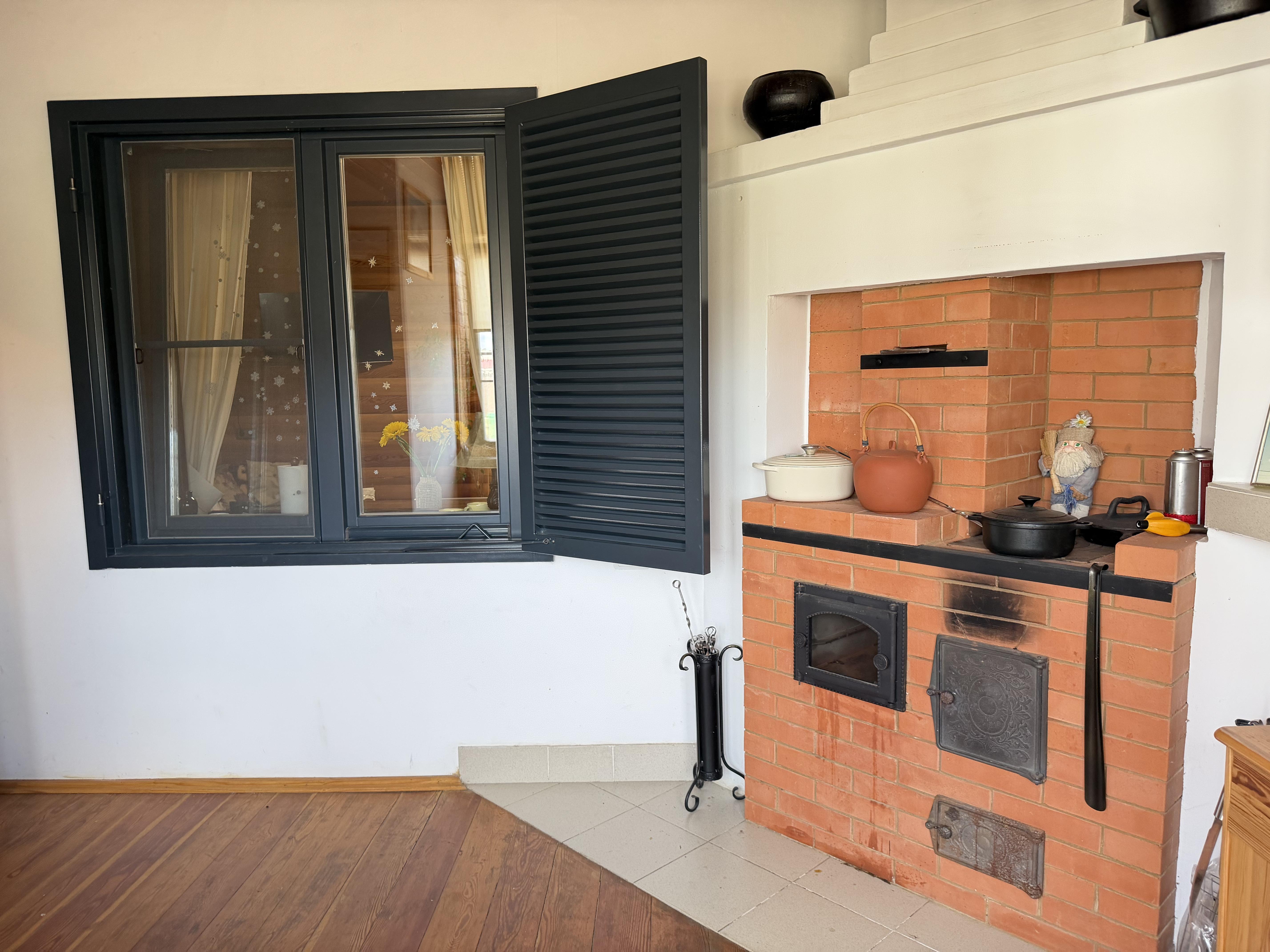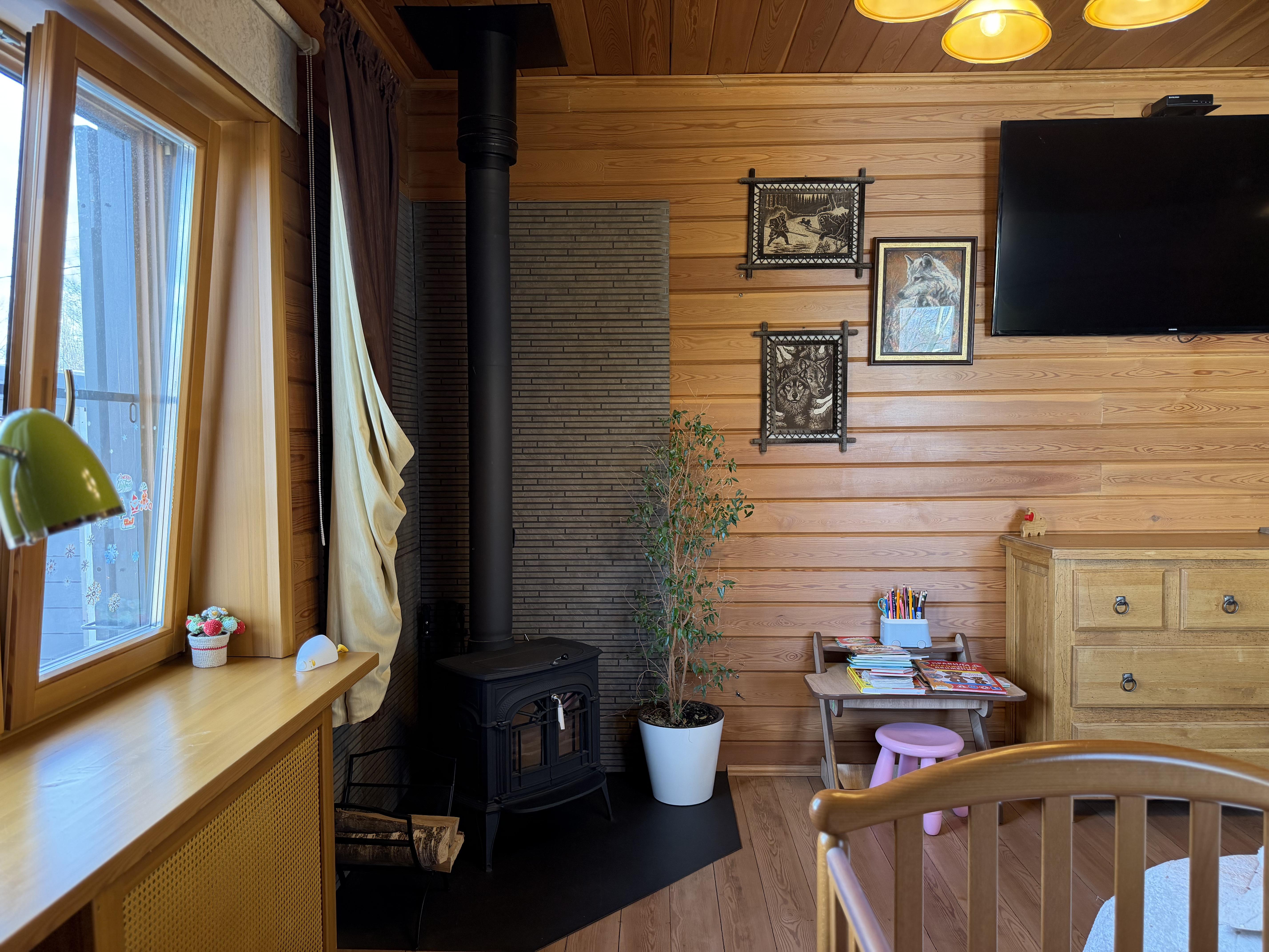 · Абсолютная энергонезависимость: в доме три печи, топятся дровами. Даже при отключении газа и света дом останется тёплым.