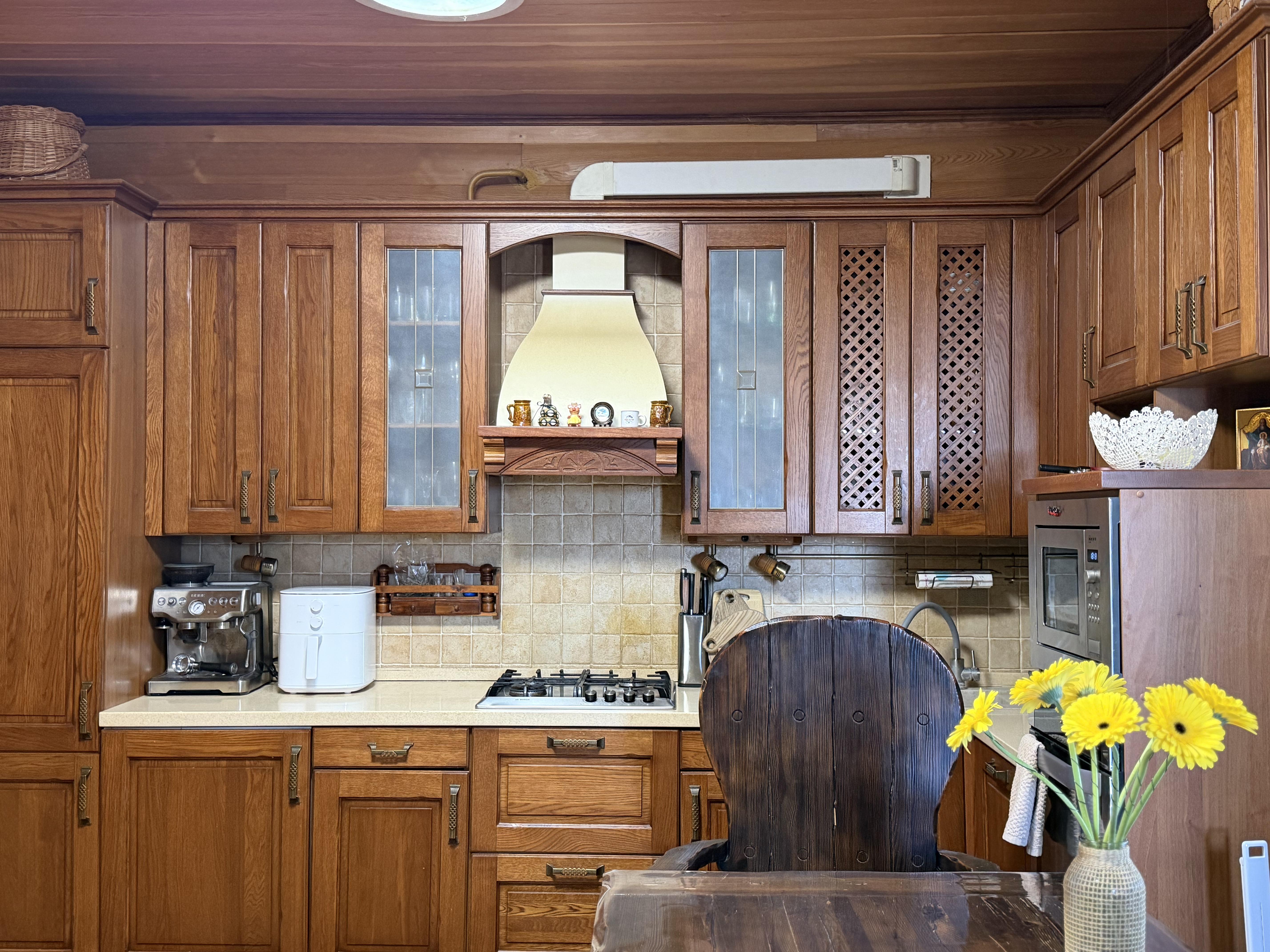 · Вода — своя. Скважина 125 м с водоподготовкой. Анализ отличный: можно пить из крана.