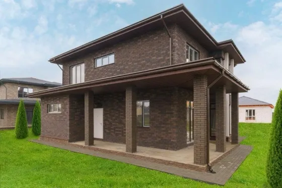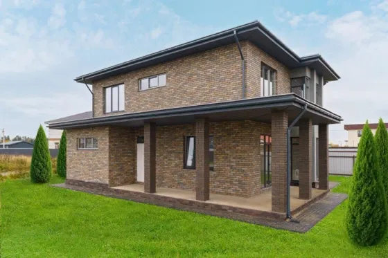 Дом с монолитным фундаментом и фасадом из дорогой клинкерной плитки.