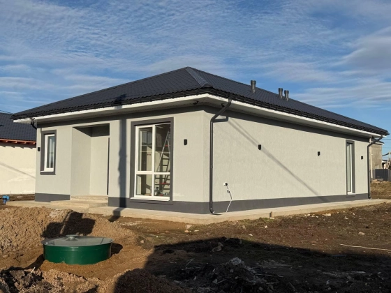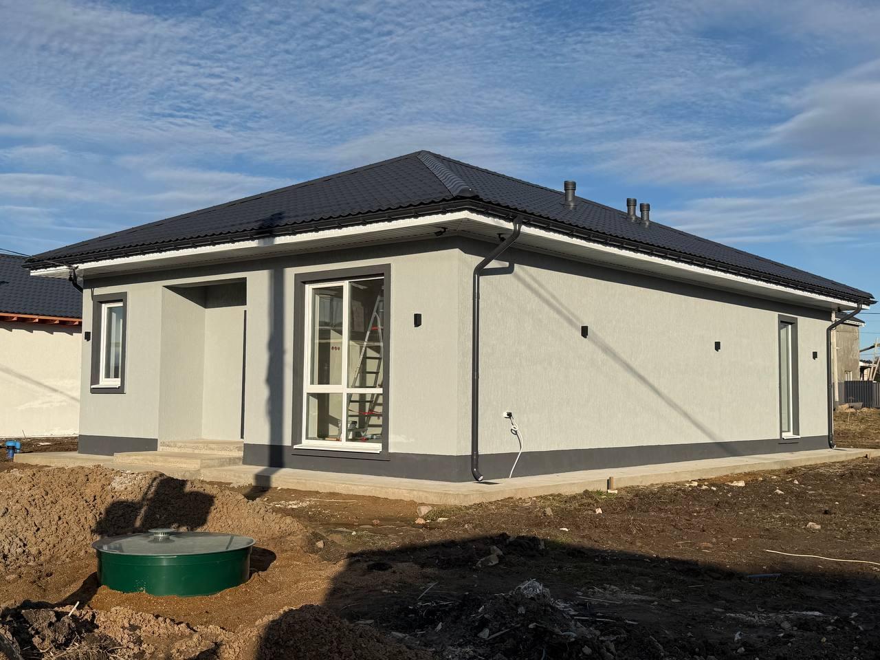 - Стены — газоблок D500, утеплитель, фасад: штукатурка “короед”.
