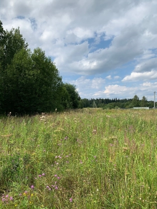 УЧАСТОК ровной прямоугольной формы с небольшим количеством деревьев на территории . Прекрасный вид на лес . Тишина и спокойствие .