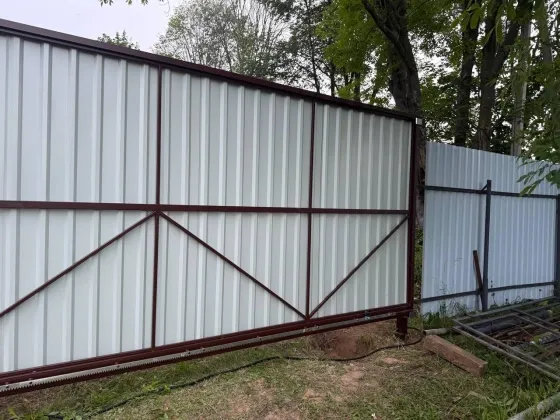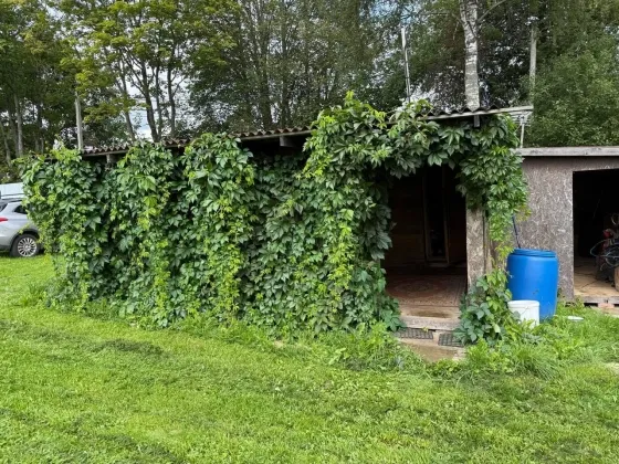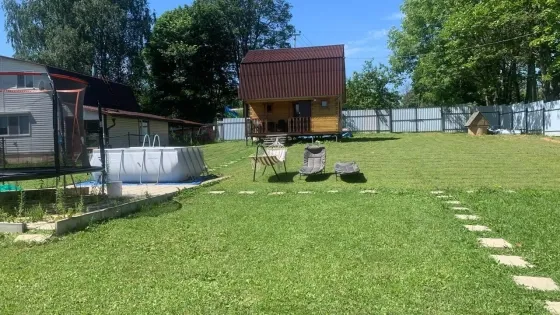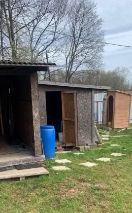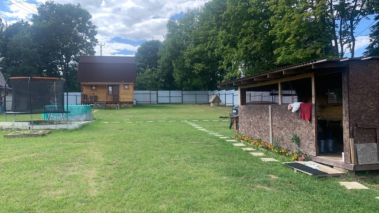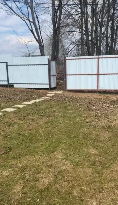 Участок второй линии, с двумя подъездами и двумя откатными воротами — к бане и бытовке. Соседи только с одной стороны, проживают круглогодично.